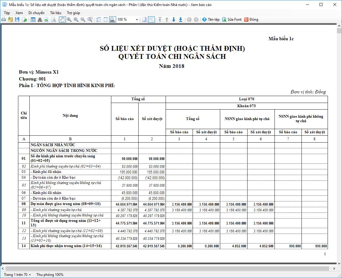 - Mẫu biểu 1c: Số liệu xét duyệt (hoặc thẩm định) quyết toán chi ngân sách - Phần I (đặc thù Kiểm toán nhà nước)